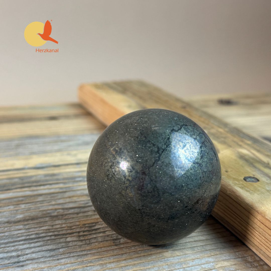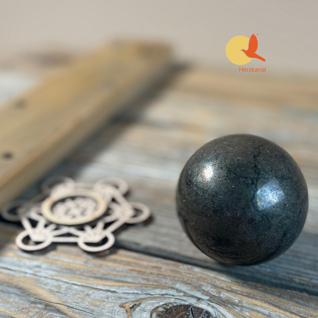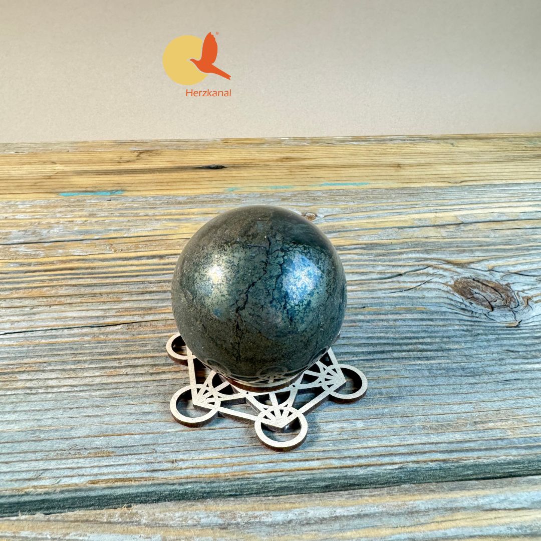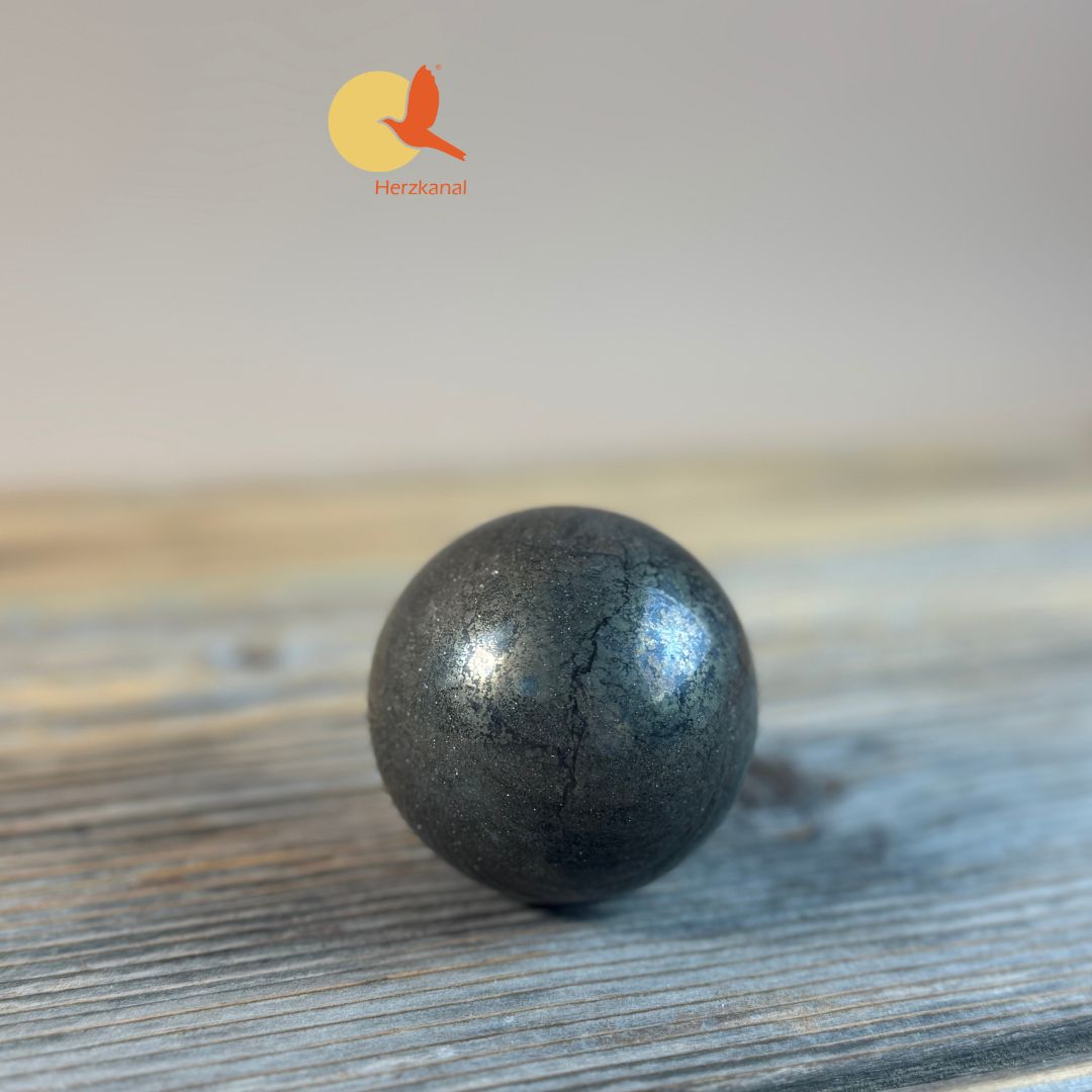 Durch ihre Form eignet sich die Pyrit-Kugel hervorragend als energetischer Anker in Räumen, bei Meditationen oder in systemischer Arbeit.